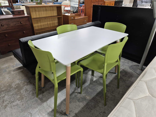 White ECHO Dining Table With 4x Assorted Colours Chairs 52899